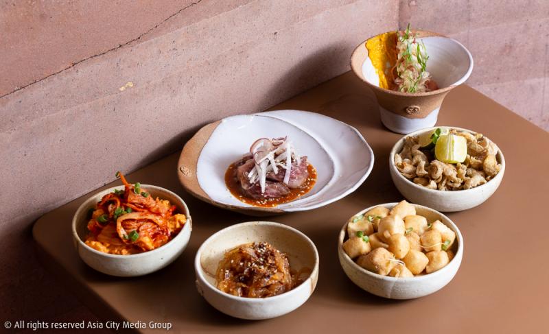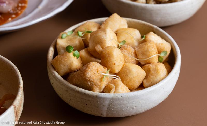 รวมถึงสแน๊กต่าง ๆ อาทิ Tofu Karaage (170 บาท) Kimchi Potato Salad (100 บาท) B.F.G. Chicken Skin (120 บาท) และ Chuka Karaage - Marinated Jelly Fish (160 บาท) ที่ทำออกมาได้ดีเกินราคา มีการใส่กิมมิครสชาติแปลก ๆ ลงไปให้อาหารออร์เดิร์ฟเหล่านี้น่าสนใจขึ้นกว่าเดิมอีกหลายสเต็ป