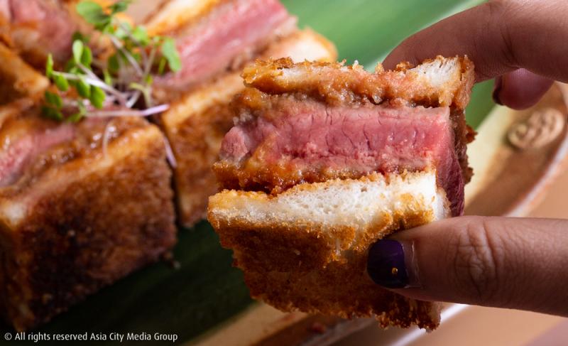 ซึ่งถ้าใครอยากฟินนาเล่แบบกลับไปบ้านแล้วยังฝันถึงอยู่ ที่ร้านก็มีเมนู Kobe Wine Sando (1,450 บาท) ไว้ให้สั่งด้วย โดยจะใช้เนื้อโกเบที่่ถูกเลี้ยงด้วยกากองุ่นเท่านั้น และสำหรับคนที่ไม่ทานเนื้อก็ยังมีเมนู Marinated Pork Sando (400 บาท) ด้วยเช่นกัน