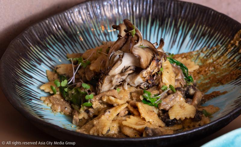 ด้วยความที่มีประสบการณ์จากการทำร้านซูชิอย่าง Fat Boy Sushi มาก่อนหน้านี้ คุณบายเลยจงใจรังสรรเมนูทุกจานของ Bambino ให้ออกมามีชั้นเชิง เริ่มด้วยการเลือกใช้วัตถุดิบซูชิเกรดชั้นดีที่ผสมผสานทั้งจากซัพพลายเออร์โลคัลในไทยและอิมพอร์ตตรงมาจากต่างประเทศ ยกตัวอย่างเช่นจานพาสต้า Bow Ties Grilled Mushrooms Cashew Miso (330 บาท) ที่เอาใจคนรักอาหารเจด้วยซอสพาสต้ามิโสะผสมเม็ดมะม่วงหิมพานต์นัว ๆ