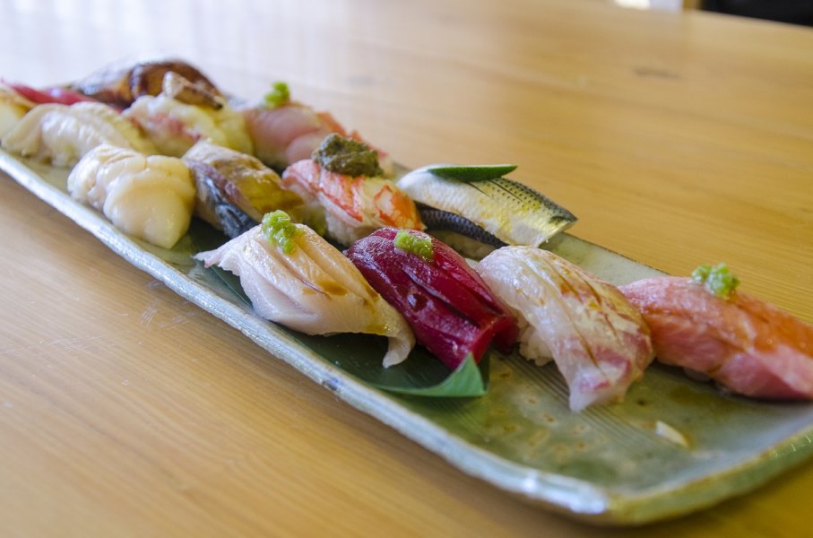 ไม่ต้องบินไปไกลถึงญี่ปุ่นแล้ว เพราะ Endo Sushi จากตลาดปลาโอซาก้าได้เดินทางมาถึงเมืองไทยในซอยทองหล่อนี่เอง ทางร้านเน้นเรื่องความสดของปลาอย่างทูน่ามากูโระ เอนกาวะ และปลาฮามาจิเนื้อนุ่มเสมือนละลายในปาก เราแนะนำ Maze ชุดซูชิ 5 คำ (450 บาท) ที่เปลี่ยนแปลงวัตถุดิบตามฤดูกาล สั่งมาลองคู่กับสาเกสักถ้วยก็เข้าท่า (เริ่มต้น 380 บาท)