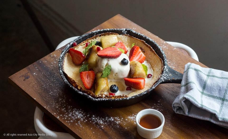 ถ้าใครยังเหลือที่ว่างในกระเพาะ ก็อย่าลืมตบท้ายมื้อเช้าด้วยแพนเค้กสไตล์ดัชท์ (180 บาท) ของที่ร้านนี้ด้วยล่ะ รับรองว่าจะติดใจจนต้องแวะไปอีกทุกอาทิตย์แน่นอน