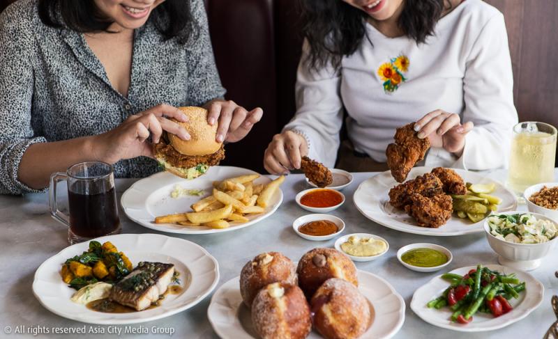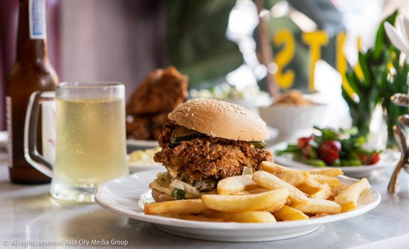 จริง ๆ ร้านนี้เป็นอะไรที่ขัดใจเรามาก เพราะอาร์ติซานอลโดนัท (โดนัททำมือ) ของร้านนี้คืออร่อยมากจริง ๆ แต่ถ้าไปสายนิดเดียวคือก็ไม่ทันจริง ๆ เช่นกัน แต่ช่วงสงกรานต์นี้เราเชื่อว่าจะไม่ค่อยมีคนมาแก่งแย่งชิงดีกับเรามากเท่าไหร่ เลยเป็นโอกาสดีที่จะแวะไปซื้อโดนัท (40 บาท) แล้วนั่งแทะไก่ทอดสูตรประจำตัวของเชฟหนุ่มขาวสิงคโปร์ที่เราบอกเลยว่ากรอบฉ่าถึงใจ เราอยากให้ลองสั่ง Fried Chicken Sandwich (260 บาท) เมนูอิ่มท้องที่เชฟใช้แป้งบันเบอร์เกอร์ทำเอง มาประกบเข้ากับโคลสลอว์ชิ้นใหญ่ ผักดอง และแน่นอนว่าไก่ทอดพระเอกของร้าน กินไปพร้อมฟังลิสต์เพลงร็อกแอนด์โรลและการาจร็อกโยกหัวแรง ๆ ที่เป็นลิต์เพลงโปรดของเชฟไปด้วย คือรู้สึกเหมือนนั่งอยู่ในคาเฟ่อาหารเช้าแถบซีแอตเทิลเป๊ะ ๆ เลยเด้อ