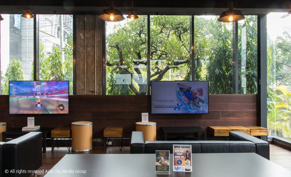 ถึงชื่อร้านจะให้ฟีลถ้ำ ๆ แต่สถานที่จริงนี่คนละเรื่องกันเลย เราชอบผนังกระจกรอบด้านที่ให้ความรู้สึกปลอดโปร่ง โต๊ะ-เก้าอี้ถูกจัดเรียงห่างกันพอดี ไม่อึดอัด และส่วนที่เจ๋งที่สุดคงต้องยกให้โซฟาดูดวิญญาณที่มี Play Station 4 และโทรทัศน์จอเบิ้มอยู่ตรงหน้า คันไม้คันมืออยากเล่น FIFA 18 ขึ้นมาทันที