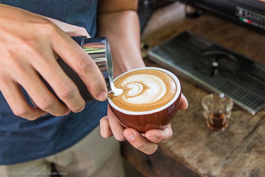 แต่ถ้าพูดถึงเรื่องชะตาที่ลงตัวที่สุดของร้านนี้ คือความบังเอิญที่คุณป๊อกไปถูกชะตากันพอดีกับคุณเต้ย-นพดล จันทรานภาภรณ์ ซึ่งถ้าใครเป็นสายคาเฟ่ฮ็อปปิ้งก็น่าจะเคยได้ยินชื่อพี่เต้ยมาบ้าง เพราะนี่คืออีกหนึ่งตัวพ่อของสายกาแฟและลาเต้อาร์ตที่เราขอชาบู เลยทำให้พาร์ทกาแฟของร้านนี้มีมิติและความเป็นเอกลักษณ์ที่กลั่นกรองมาจากตัวตนของทั้งพี่ป๊อกและพี่เต้ย แบบไม่ต้องพึ่งโชคชะตาราศีก็บอกได้เลยว่าร้านนี้ฮิตแน่นอน