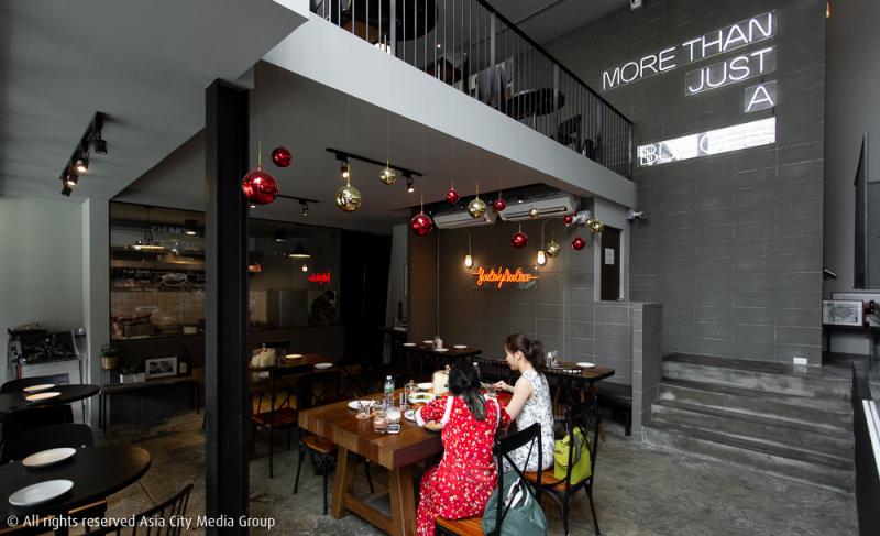 หลัก ๆ ที่เราเห็นได้จากการรีโนเวตร้านครั้งใหม่นี้ คือการตกแต่งที่ดูคลีนและแมนขึ้นกว่าเดิมไปอี๊ก! ทั้งการเลือกใช้สีผนังปูนเปลือย เฟอร์นิเจอร์ไม้สีเข้ม และตัดด้วยไฟนีออนดัดสีแดงฉาน ให้ฟีลเหมือนเดินเข้าร้านคราฟต์เบอร์เกอร์ในอเมริกาเลยทีเดียว