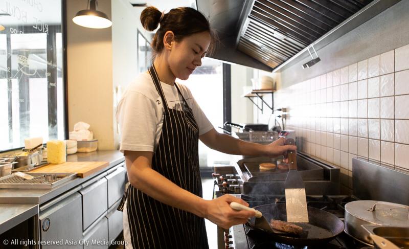 ด้วยความที่เจ้าของร้านนี้ทั้งคู่อย่าง คุณบูม-กันต์ยรัตน์ เพียรพอดีตน และ คุณเบ้ล-เอกชัย แสงกาศนีย์ มีดีกรีเชฟอาหารนานาชาติที่สนใจเรื่องการทำเบอร์เกอร์เป็นพิเศษ เราเลยจะเห็นความคราฟต์ขั้นสุดของเมนูเบอร์เกอร์ที่ Chunky เริ่มจากการทำแป้งบันด้วยมือแทบทุกวัน เพื่อเตรียมไว้ใช้สำหรับเมนูเบอร์เกอร์ทุกจานในร้าน โดยแป้งบันที่นี่จะทำจากแป้งมันฝรั่ง ซึ่งมีความนุ่มหนึบหนับคล้ายเทกซเจอร์ของขนมปังบริยอช (Brioche) แต่ก็ไม่ได้ Juicy ขนาดที่น้ำจากเนื้อสัตว์จะซึมลงไปได้