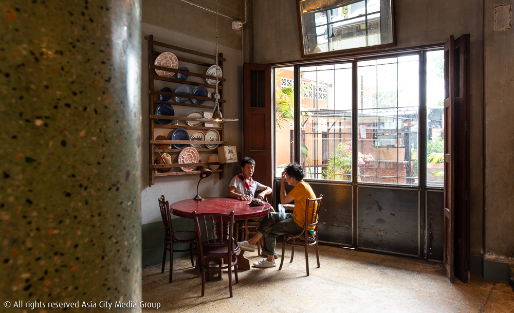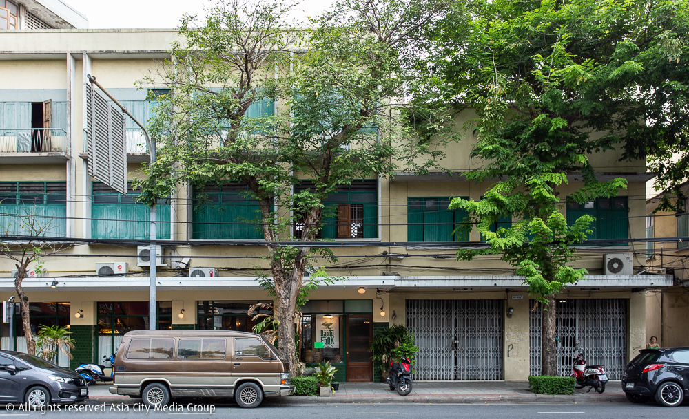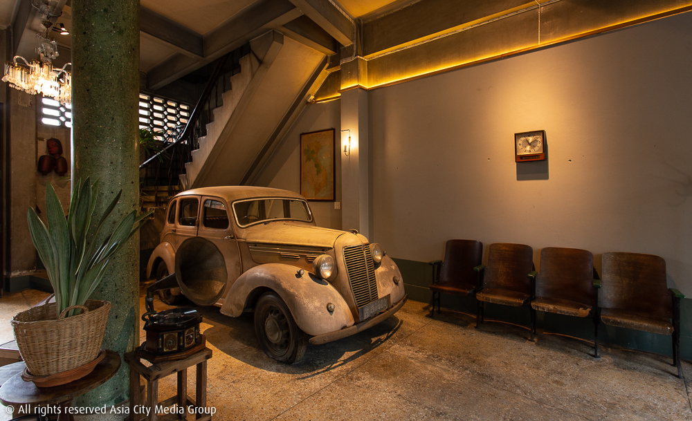 อาคารห้องแถวหลังเก่าทอดตัวยาวเลียบถ.จักรพรรดิพงษ์แห่งนี้เป็นตึกเก่าอายุกว่า 60 ปี ที่ยังไม่เคยรีโนเวตหรือผ่านมือใครมาก่อน กลิ่นอายแบบ 60s แท้ ๆ ที่เป็นผลลัพธ์มาจากยุคหลังสงครามยังคงอบอวลชวนให้ค้นหาอยู่อย่างครบถ้วนในร้าน ไล่มาตั้งแต่สีผนังเก่า โครงสร้างซุ้มประตู ราวบันได ยันรถ Moris Ten คันเก่าที่จอดแน่นิ่งอยู่ตรงนั้นมา ก็ยังจอดประจำตำแหน่งเดิมอยู่อย่างนั้น