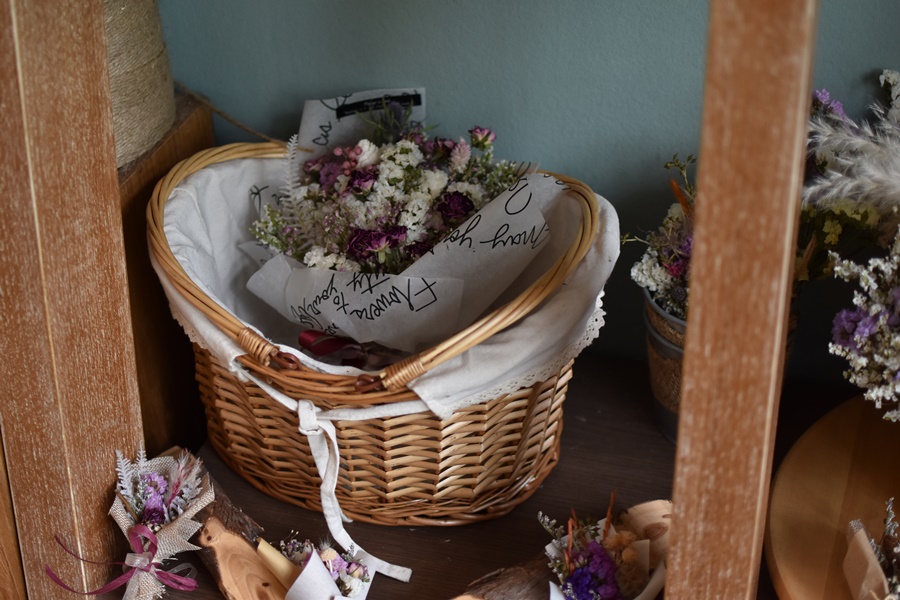 อย่างคอร์สที่เราไปแจมเป็นคอร์สจัดช่อดอกไม้แห้งไซส์มินิ สำหรับเก็บใส่กล้องไม้เพื่อเป็นของขวัญสำหรับคนพิเศษ ที่สำคัญคือมันสามารถเก็บได้เป็นปีเลยล่ะ โดยในแต่ละคอร์สจะมีทั้งพี่แพรและพี่พลอยซึ่งเป็นเจ้าของร้านมาคอยสอนด้วยตัวเองแบบเทคแคร์ดีมากๆ พร้อมให้ความรู้เรื่องชนิดของดอกไม้ต่างๆ ที่เรานำมาใช้อย่างครบถ้วน