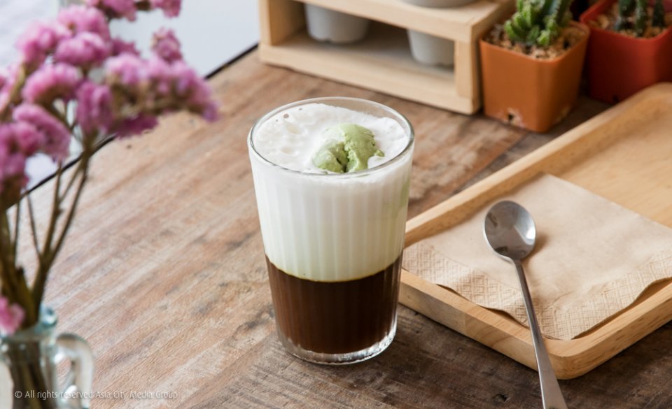 นอกเหนือจากกาแฟแล้ว ที่นี่ยังมีชา และขนมให้ลอง แต่ถ้าใครอยากปนทุกอย่างเข้าด้วยกัน เราแนะให้ลอง Shrek กาแฟเจลลีที่โปะด้วยฟองนมนุ่มๆ ด้านบนที่แช่ไอศกรีมชาเขียวมาให้กินเพิ่มความหวานให้หลากรสสัมผัสมากขึ้นไปอีก
