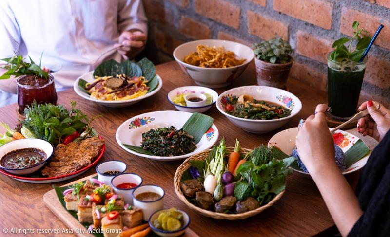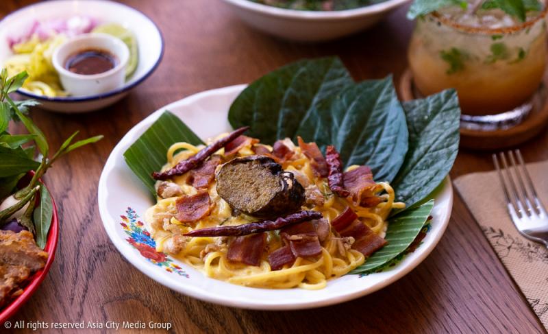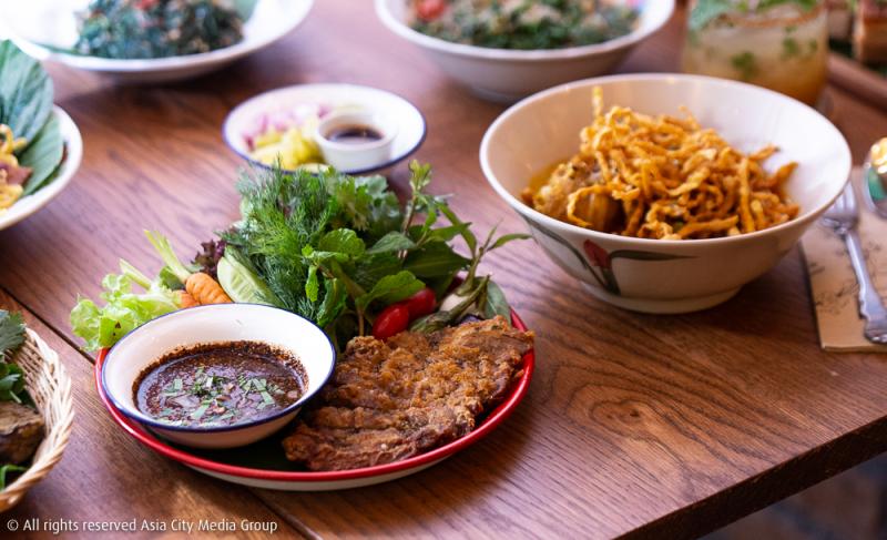 แค่เปิดประตูเข้าไปในร้านก็ให้บรรยากาศแบบไทยมาก ๆ ทั้งโต๊ะ เก้าอี้ จาน ชาม หรือจะประดับประดาด้วยโคมไฟจากเครื่องจักสาน และโซฟาที่มีลวดลายจากผ้าพื้นเมือง ล้วนแต่เป็นสิ่งที่อยู่ในชีวิตจริงของชาวพื้นบ้านต่าง ๆ เรียกได้ว่าเข้าถึงความเป็นไทยได้เป็นอย่างดี บรรยากาศต่าง ๆ ก็ไม่ต่างจากสาขาที่เชียงใหม่เลย เรื่องเมนูอาหารของที่นี่ก็ไม่พลาดที่จะขนหลายเมนูเด็ดมาจากแดนเหนือให้เราได้พิสูจน์ความอร่อยกันอีกครั้ง เรียกว่าเคยกินจานไหนที่เชียงใหม่แล้วติดใจ มาสั่งที่นี่ก็อร่อยรสเดียวกัน