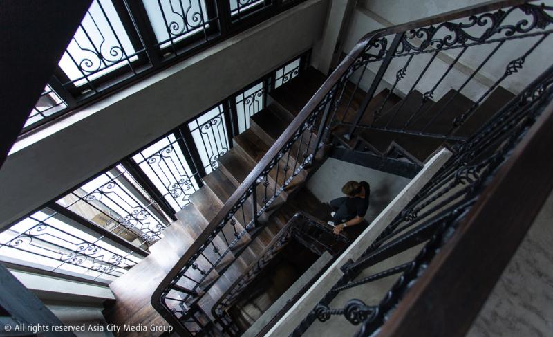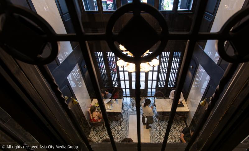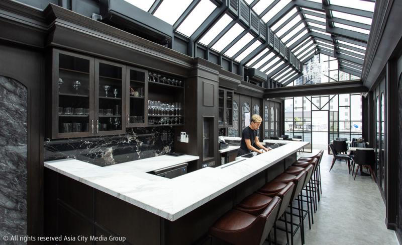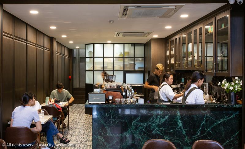 ตัวร้านแคบ ๆ ในห้องแถวไซซ์เล็กย่านพญาไทแห่งนี้ ถึงจะอยู่ลึกลับเล็กน้อยจากคาเฟ่ส่วนใหญ่ที่อยู่ติดถนน แต่ก็ไม่ไกลขนาดเดินไม่ไหว บรรยากาศภายในดูเคร่งขรึมสไตล์ผู้ดีฝั่งตะวันตกด้วยโทนสีดำและน้ำตาลเข้ม แบ่งโซนนั่งไว้ที่ชั้นหนึ่งและชั้นสอง ส่วนชั้นสี่ที่ใต้หลังคาจะถูกแปลงโฉมเป็นค็อกเทลบาร์ในเร็ว ๆ นี้