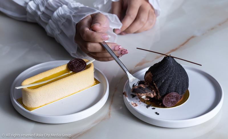 และที่เราชอบมาก ขอยกให้สองเมนูนี้ คือ Devil's Horn (240 บาท) และ Lemon Earl Grey (220 บาท) ซึ่งทั้งสองอันเป็นซิกเนเจอร์เค้กที่ทางร้านรังสรรออกมาสำหรับคนรักของหวานโดยเฉพาะ มีลักษณะเป็นมูสเค้กด้วยกันทั้งคู่ แตกต่างกันที่รสชาติของดาร์กช็อคโกแลตเข้มข้นที่ชิ้นแรก และกลิ่นหอมของชาในเค้กตัวที่สอง ซึ่งถูก infused ไว้ในเนื้อเค้ก พร้อมตัดรสเลี่ยนด้วยไส้เลมอน