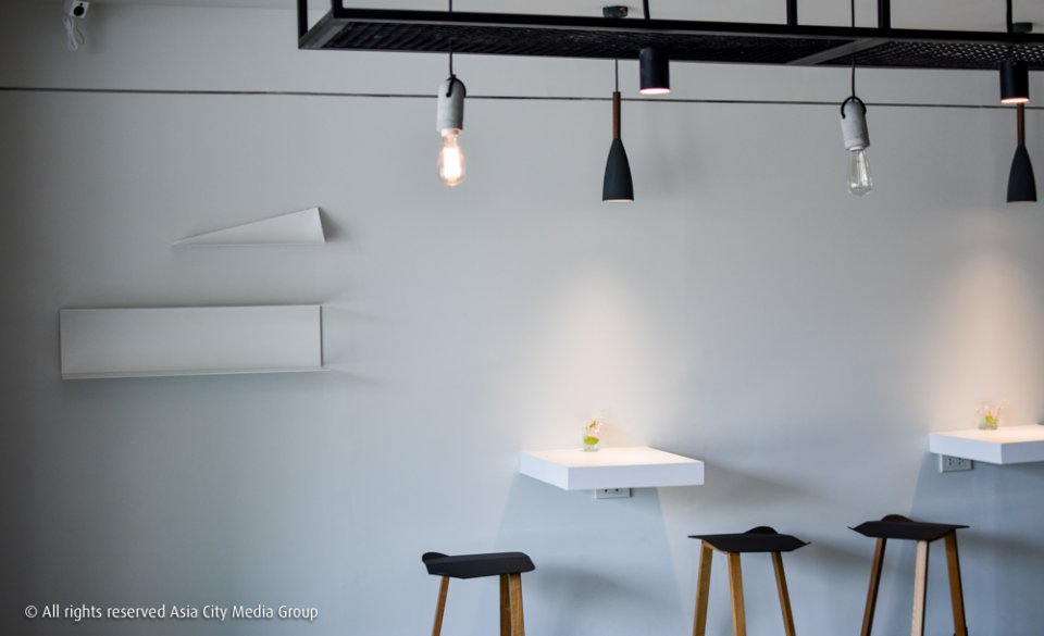 การดีไซน์ตัวร้านเน้นที่ความโปร่งและการใช้แสงธรรมชาติ เข้าไปแล้วรู้สึกถึงวิถีเซนมากๆ มีความมินิมอลคุมโทนในสีขาว เทา ดำ ทำให้รู้สึกว่าชื่อ Invisible Coffee Room นี่น่าจะเป็นชื่อที่เหมาะที่สุดสำหรับร้านนี้จริงๆ นั่นแหละ