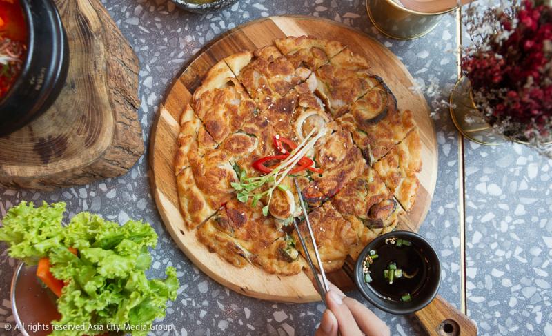 ขึ้นบ้านใหม่ทั้งที เมนูก็ต้องมีความพิเศษกันหน่อย วันนี้เราเลยจัดเต็มเมนูพิเศษที่อปป้า Cho Kunhee เจ้าของสูตร และ คุณเกด-รดา พีฒนพล เจ้าของร้าน บอกกับเราว่าเหมือนเป็นเมนูลับที่คนไม่ค่อยกล้าสั่ง แต่จริง ๆ คืออร่อยมากเว่อร์ เริ่มจาก Haemui Pajeon (230 บาท) แพนเค้กเกาหลีที่หลาย ๆ คนเรียกว่าพิซซ่าเกาหลีนั่นเอง อันนี้พิเศษตรงที่มีไส้เป็นซีฟู้ดเน้น ๆ สมกับเป็นแพนเค้กข้าวสูตรปูซาน เมืองที่เต็มไปด้วยอาหารทะเลชั้นเลิศ ชิมไปคำแรกแล้วแทบจะตบปากตีแขนตัวเองว่าทำไม่สั่งมาลองให้เร็วกว่านี้ คือมันฟินนาเล่กว่าที่คิดมาก ๆ