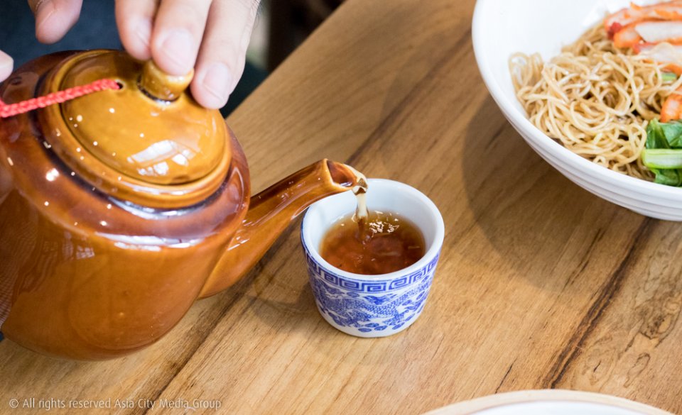 เมนูต่าง ๆ เข้ากันได้ดีกับชาจีนผสมดอกเก็กฮวย (80 บาท) มีส่วนผสมของชะเอม จิบร้อน ๆ หอมขึ้นจมูก
