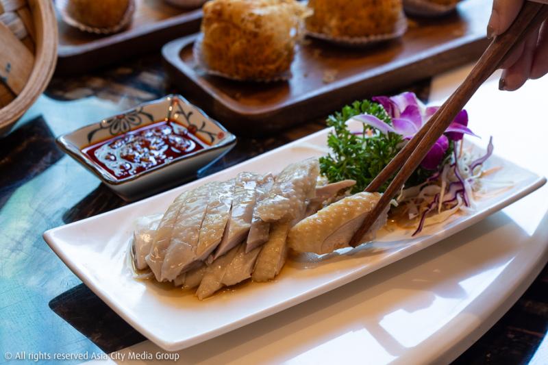 ส่วนจานหลักที่พลาดไม่ได้ก็เห็นจะเป็น ไก่แช่เหล้า (200 บาท) ซึ่งใช้เทคนิคการนึ่งเย็นให้เนื้อไก่พันธุ์ผสมที่คัดสรรมาจากโลคัลฟาร์มมีความเหนียวสู้ฟันและหอมกลิ่นเหล้าจีน