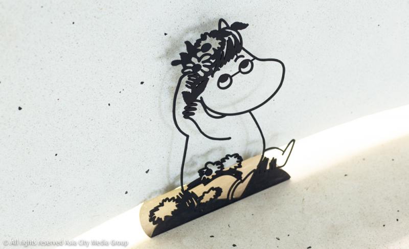 พอก้าวเท้าเข้ามาในร้าน ที่นี่ก็ทำให้เรารู้สึกเหมือนจิบชาอยู่ในป่าที่แวดล้อมด้วยเหล่ามูมินและผองเพื่อน เพราะตัวร้านออกแบบมาเป็นเรือนกระจกทำให้มองเห็นต้นไม้สีเขียวโดยรอบ ภายในร้านมีช่องกระจกด้านบนเคาน์เตอร์ที่มองเห็นกิ่งก้านของต้นไม้ ส่วนดีเทลอย่างเก้าอี้นั่งก็ถูกออกแบบมาให้เหมือนโขดหินกลางป่า มีตัวคาแรคเตอร์อยู่ตามจุดต่าง ๆ ให้คนรักมูมินฟินกันไปข้าง แถมเราขอบอกว่า ในร้านน่ะแสงสวยจริงอะไรจริง จะแอบเซลฟี่กับแก้วชาหรือจะพกกล้องมาถ่ายรูป ก็สวยไม่แพ้กันเลย