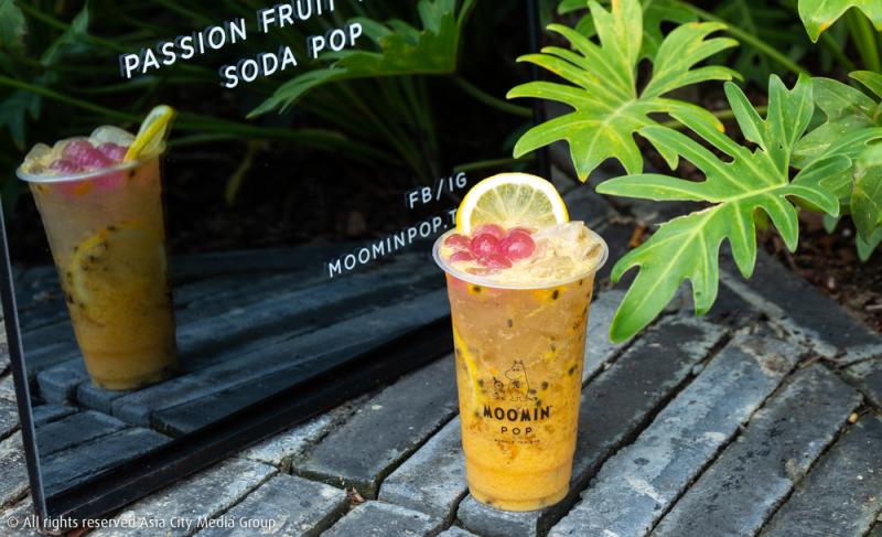 ไม่ใช่แค่บรรยากาศที่ทำให้รู้สึกสบายๆเท่านั้นนะ เครื่องดื่มของที่นี่ก็เริ่ดไม่แพ้กัน เพราะมีทั้งชานมหวานมันพร้อมไข่มุกสองชนิดที่ให้รสสัมผัสต่างกัน ไข่มุกสีดำจะนุ่มหนึบหนับ ส่วนไข่มุกสีทองที่เป็นสูตรเฉพาะของทางร้านก็เด้งดึ๋งเข้ากับชานมเป็นอย่างดี แต่ที่เราชอบที่สุดคือเขามีสารพัดเมนูเครื่องดื่มที่ครีเอทขึ้นมาเอง อย่าง Moomin Summer Pop (145 บาท) ที่สดชื่นสุด ๆ จากน้ำเสาวรสโซดา บวกกับความหวานอมเปรี้ยวจากยาคูลท์ ท๊อปด้วยกิมมิคแปลกใหม่อย่างเม็ดป๊อบที่พอกัดแล้วน้ำลิ้นจี่ข้างในจะพุ่งเข้าปาก ซึ่งทางร้านแอบกระซิบมาว่า เม็ดป๊อบอันนี้ทางร้านคิดขึ้นเองด้วย