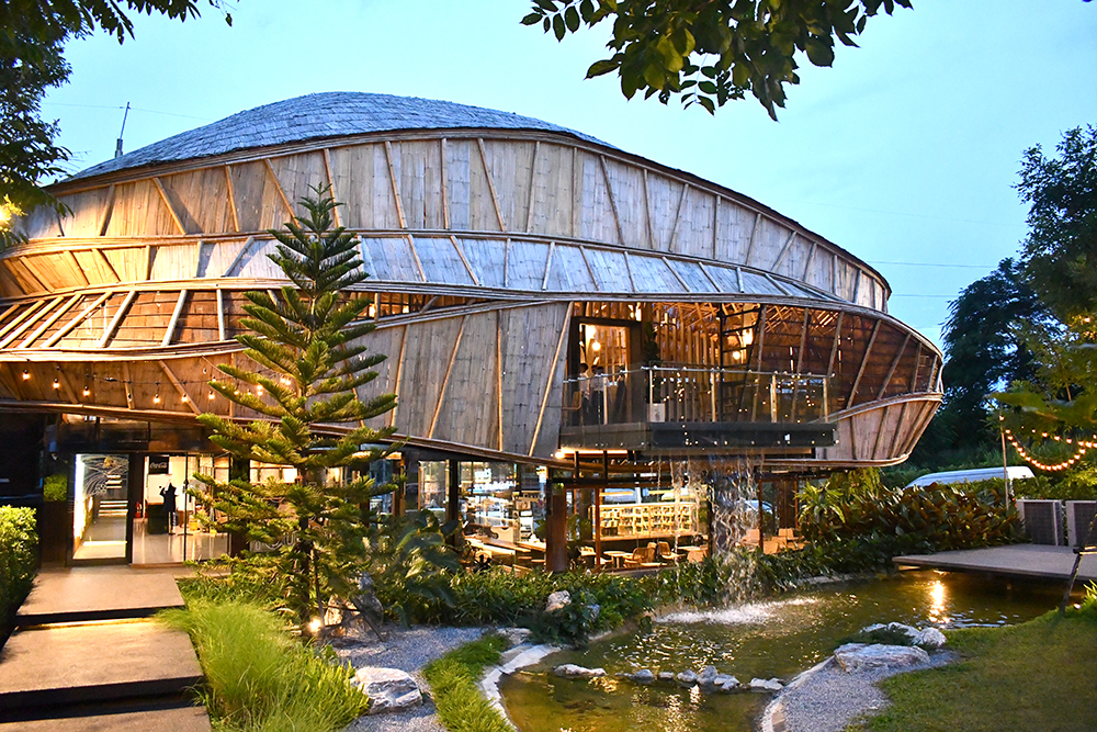 ถ้าบอกว่ารูปแบบสถาปัตยกรรมที่เห็นอยู่นี้เป็นหนึ่งในผลงานการออกแบบของทีมสถาปนิกที่เคยฝากฝีมือไว้ในงานเฟสติวัลสุดยิ่งใหญ่แห่งประเทศอย่าง Wonderfruit หลาย ๆ คนคงต้องร้องอ๋ออย่างแน่นอน เพราะเขานำเอาเอกลักษณ์การใช้วัสดุธรรมชาติอย่างไม้ไผ่ มาสร้างเป็นอาคารพาวิลเลียนขนาดยักษ์ในรูปทรงฟรีฟอร์ม โดยมีจุดเด่นคือทางเดินวนรอบตัวพาวิลเลียนซึ่งเชื่อมระหว่างชั้น 1 จนถึงชั้น 3 คล้ายโครงสร้างแบบเกลียว ซึ่งแน่นอนว่าการลงทุนทำร้านอาหารในระดับบิ๊กสเกลขนาดนี้ แม่ที่ไหนก็ไม่มีทางยอมให้ลูกทำเด็ดขาด นั่นเลยเป็นที่มาชื่อร้าน Mother Say No ที่หลายคนสงสัยนั่นเอง!