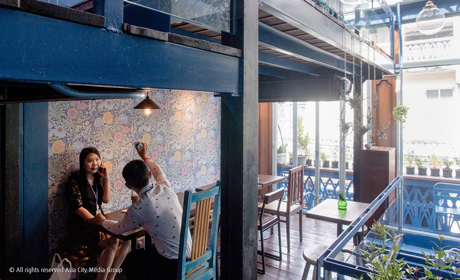 ไม่กี่เดือนก่อนเราเพิ่งเล่าถึงคาเฟ่สีเหลืองสดใสย่านท่าเตียนอย่าง Make Me Mango ไปหมาดๆ (ตามไปอ่านได้ที่บทความนี้) คราวนี้ขอแนะนำคาเฟ่สีฟ้าน้ำทะเลอย่าง Blue Whale กันบ้างนะ คุณกุล คุณจิ๊กกี๋ และคุณเบส 3 หุ้นส่วนผู้มีความชอบสีฟ้าเหมือนกันได้ตกลงปลงใจเลือกเจ้าวาฬมาเป็นสัญลักษณ์ของคาเฟ่สุดชิลที่ทุกอย่างเป็นสีฟ้า ทั้งพื้น ผนัง พร้อมโต๊ะเก้าอี้แบบวินเทจ ตกแต่งด้วยต้นไม้น้อยใหญ่ให้บรรยากาศสดชื่นทั้ง 3 ชั้น