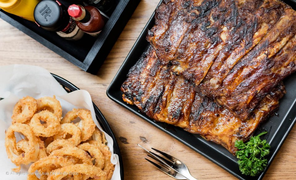 เราชอบ Baby Back Ribs (225-675 บาท) ซี่โครงหมูย่างราดซอสบาร์บีคิวเป็นสูตรเฉพาะของทางร้าน รวมถึงเบอร์เกอร์ชิ้นโตอย่าง The Cowboy Burger (325 บาท) เบคอน ชีส หอมใหญ่ชุบแป้งทอด และซอสบาร์บีคิว ความพิเศษอยู่ตรงที่เราเลือกได้ว่าจะเอาขนมปังรสเผ็ดหรือธรรมดา บอกก่อนว่าทุกเมนูนั้นเสิร์ฟชิ้นใหญ่จัดเต็ม บางเมนูกิน 4 คนยังอิ่มพุงแตก!