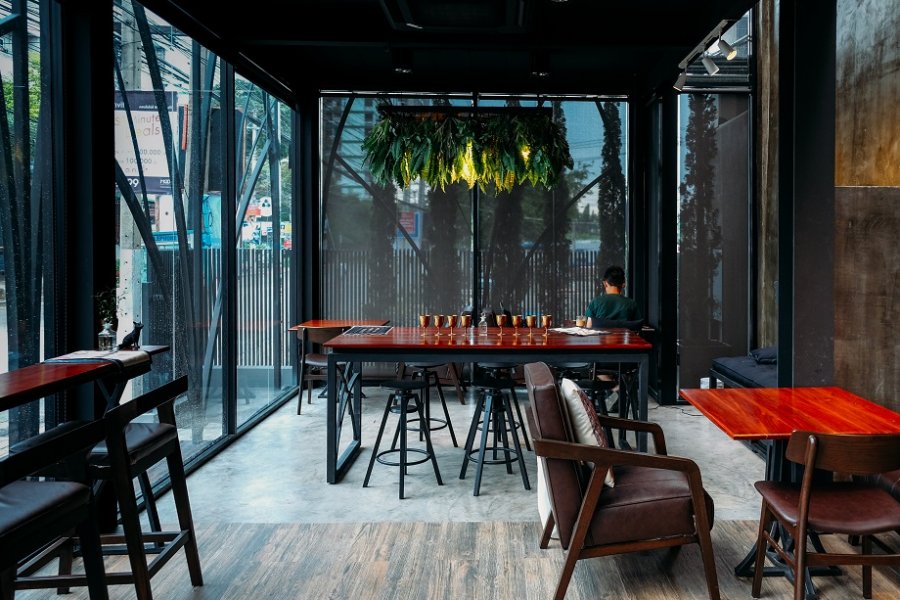 เมื่อเดินเข้าไปในร้านจะเจอกับบาร์ยาวไว้สั่งอาหารและเครื่องดื่ม อาทิ Jaeger (200 บาท) สเต็กเนื้อเทนเดอร์ลอยด์นุ่มลิ้น ราดซอสโฮมเมด เคียงด้วยมันอบ หรือจะเป็นย The Twins (180 บาท) ไส้กรอกย่างร้อนๆ ที่มีซอสให้เลือกจิ้มหลายรสตามชอบ สำหรับเครื่องดื่มก็มีทั้งกาแฟที่ใช้เมล็ดของ Brave Roaster (เริ่มต้น 60 บาท) ช็อกโลแลต และน้ำผลไม้ แต่ที่เราชอบคือ White Crow (120 บาท) เอสเพรสโซ่แช่แข็งก้อนกลม เสิร์ฟพร้อมนมสดให้เทมิกซ์เอง ความดีงามคือรสชาติจะเปลี่ยนไปเรื่อยๆ เพราะเจ้าก้อนกาแฟที่ค่อยๆ ละลายนั่นเอง