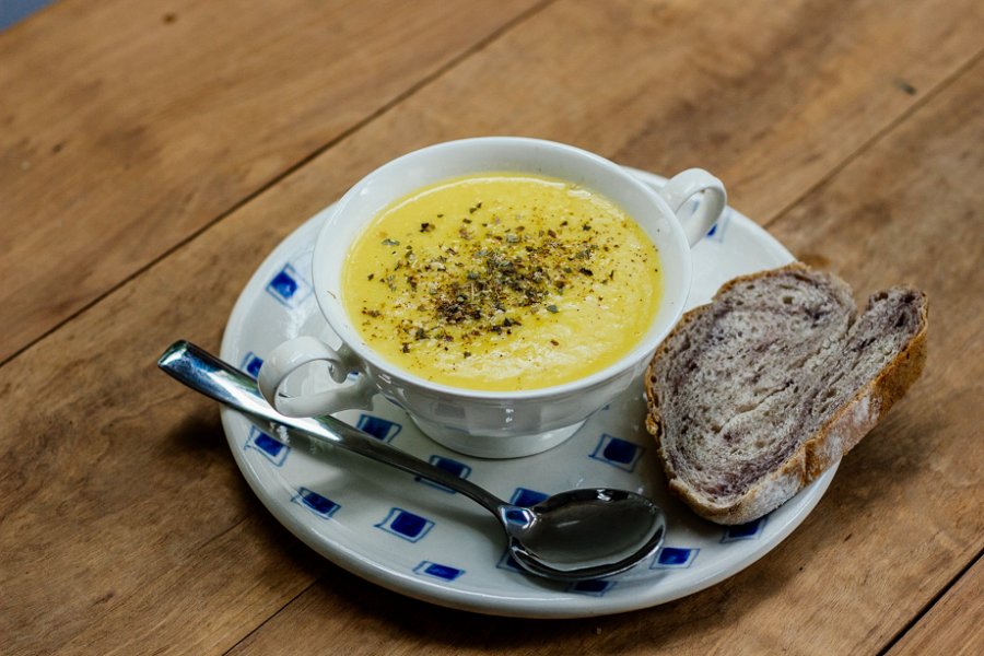 อย่างชุดบรันช์อะโวคาโด (200 บาท) ประกอบด้วยอะโวคาโด ไข่ ขนมปัง ผักย่าง และสลัดผักราดน้ำสลัดเนยถั่ว หรือชุดซุบ (มี 6 ชนิดให้เลือก ได้แก่ ฟักทอง ผักโขม เห็ด แครอท มันม่วง และข้าวโพด) ที่เสิร์ฟพร้อมขนมปังโฮมเมด (120 บาท) และเบเกอรี่อบสดใหม่ทุกวัน แต่ต้องบอกก่อนว่าเสิร์ฟอาหารเฉพาะวันเสาร์-อาทิตย์นะ