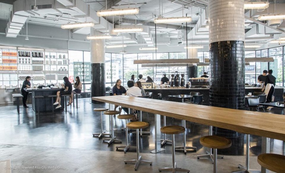 ถึงจะเป็นร้านจากอาณาจักร S&P แต่คาเฟ่สไตล์โมเดิร์นแห่งนี้มีคาแรคเตอร์โดดเด่นเป็นหนึ่งเดียวไม่เหมือนกับร้านในเครือสาขาอื่นๆ หรอกนะ SNP Headquarter ครอบครองพื้นที่สุดกว้างขวางของชั้น G ของตึก Italthai Tower ผนังร้านเป็นกระจกใส เติมลูกเล่นด้วยโครงสร้างสีดำตัดกันออกมาเป็นแนวมินิมอลดิบๆ ส่วนภายในแบ่งออกเป็น 5 โซนหลัก ได้แก่ Cafe, Espresso Bar, Baking Lab, Cake Studio และ Workshop