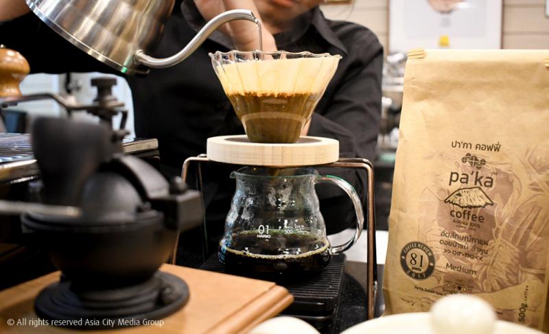 เลยไม่น่าแปลกใจที่ชื่อ 'ป่าก์' จะเป็นหนึ่งในชื่อแรก ๆ ที่แล่นเข้ามาในหัวของ เชฟภูมิ-จักรภูมิ บุณยาคม และหุ้นส่วนอย่างคุณเอี๊ยด-สกุลชัย สามเสน ลูกชายคนโตของ เชฟป้อม-หม่อมหลวงขวัญทิพย์ เทวกุล แถมยังบังเอิญไปพ้องกันกับชื่อโรสเตอร์กาแฟอย่าง Paka Coffee ที่ใช้เมล็ดกาแฟจป่าจากดอยป่าแป๋ โดยมีชาวปกาเกอะญอเป็นผู้เก็บเกี่ยวเมล็ดและคั่วด้วยมือ ซึ่งถ้าใครไปร้านนี้ตอนพาร์ตกลางวัน ก็สามารถสั่งเมนูกาแฟที่ให้รสชาติไปในโทนคาราเมลผสมเอิร์ธตี้นิด ๆ ของร้าน Paka Restaurant แห่งนี้มาลองชิมดูได้