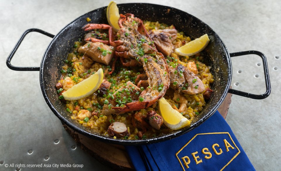 แต่ถ้าอยากกินข้าวขึ้นมาก็มีข้าวผัดสเปนสีเหลืองอร่าม Pesca's Paella Royal (เริ่มต้น 2,400 บาท) ให้อิ่มท้อง ส่วนผสมที่ลงตัวของข้าว bomba rice, Maine lobster เนื้อไก่ ไส้กรอกสเปน (chorizo) หอยลาย หอยแมลงภู่ ปลาหมึก พริกหยวก ถั่วลันเตา และซอส lobster bisque ครีมกุ้งเข้มข้น อย่าลืมบีบเลมอนก่อนกินด้วยล่ะ