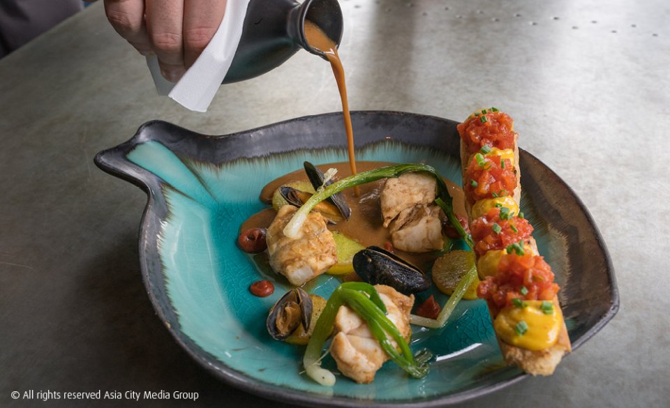 เราอยากให้ลอง bouillabaisse (เริ่มต้น 1,150 บาท) หรือง่ายๆ คือสตูปลาที่นิยมในแถบเมอร์ดิเตอร์เรเนียน เนื้อปลานุ่มลิ้มผ่านการประกอบอาหารแบบ slow cooked เสิร์ฟกับซอสเข้มข้นและขนมปัง