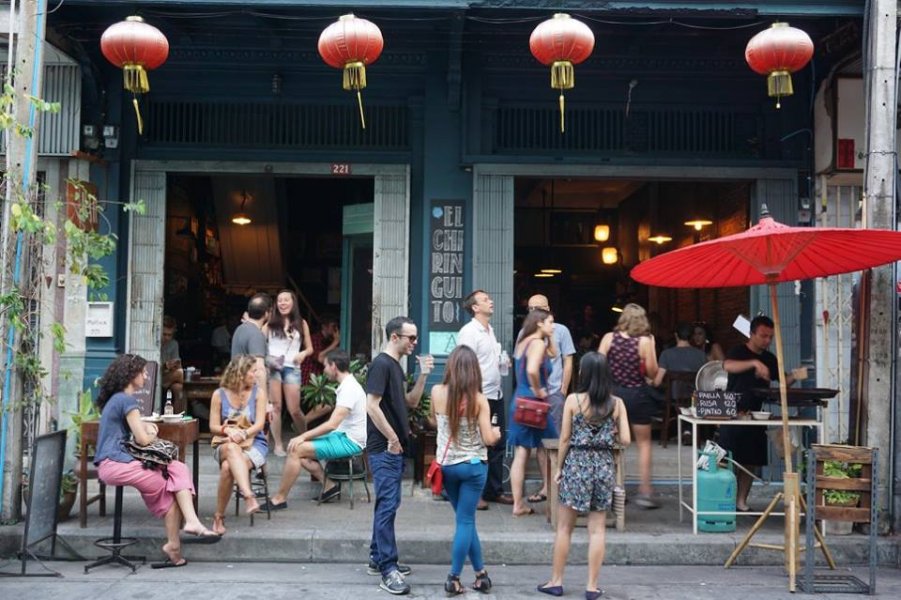 ถ้าใครชอบนั่งดริงก์ในบรรยากาศสบายๆ เหมือนอยู่บ้านเพื่อน เราแนะนำให้แวะบาร์สัญชาติสเปนขนาดเล็กแห่งนี้ ให้ฟีลเรโทรด้วยเก้าอี้ไม้ โต๊ะที่ดัดแปลงมาจากจักรเย็บผ้าเก่า โปสเตอร์โบราณ และเมนูที่เขียนด้วยชอล์กบนผนังร้าน ขึ้นชื่อว่าสเปนยังไงก็ต้องสั่ง Sangria (130 บาท) ไวน์แดงและน้ำผลไม้ หรือจินสเปนอย่าง Ginxorigeur (220 บาท) แกล้มด้วยทาปาสเมนูเด็ด Pincho Tortilla (110 บาท) ไข่เจียวสเปน หรือ Patatas Bravas มันฝรั่งทอด หรือแซนด์วิช Bocadillos นั่งเพลินๆ นึกว่าข้ามไทม์โซนไปแดนกระทิงดุซะแล้ว