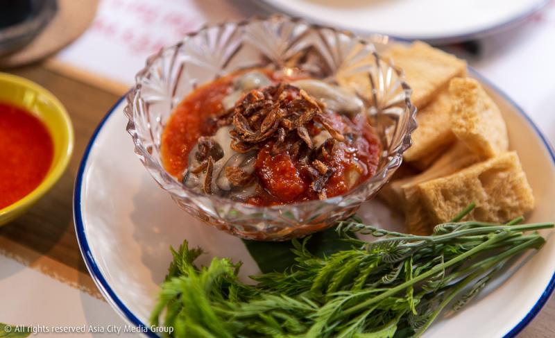 มาว่ากันต่อในพาร์ทของอาหารที่ได้ พี่ป๊อบ-นาเคนทร์ วงศ์วสุ ลูกหลานสายตรงหยิบตำราอาหารและสูตรลับที่ป้าแป๋วทิ้งไว้มาปัดฝุ่นซะใหม่ และตั้งใจทำทุกเมนูออกมาให้ใกล้เคียงต้นตำรับเดิมของป้าแป๋วมากที่สุด อย่าง นางรมพิมรส (220 บาท) จานนี้ที่เราพูดเลยว่าเกิดมายังไม่เคยเห็นที่ไหนทำขาย เป็นเมนูเรียกน้ำย่อยที่เอ็กซ์คลูซีฟเฉพาะที่นี่เท่านั้น ความพิเศษอยู่ที่ซอสศรีราชาสูตรทำเองที่นำไปคลุกรวมกับหอมนางรมตัวสด ทานคู่กับหอมเจียว กระถิน แล้วโปะลงบนขนมปังปิ้ง ถือเป็นการเปิดโลกการกินหอยนางรมสดแบบใหม่ที่ต้องมาทานที่นี่เท่านั้น