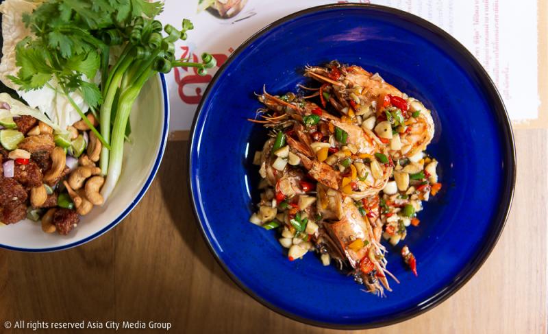 ส่วนอีกสองจานที่เราไม่อยากให้พลาดเลย คือ น้ำพริกขี้กา (180 บาท) น้ำพริกที่ป้าแป๋วใช้พริกเขียวและพริกแดงมาโขลกคู่กับกะปิ และเมนูง่าย ๆ แต่อานุภาพแรงอย่าง กุ้งผัดพริกขี้หนู (260 บาท) ที่เสิร์ฟกุ้งตัวใหญ่มาแบบไม่กลัวขาดทุน ผัดกับพริกขี้หนูสวนและกระเทียมแบบแน่น ๆ ตักไปกี่ทีก็ได้เครื่องมาเต็ม ๆ ช้อน
