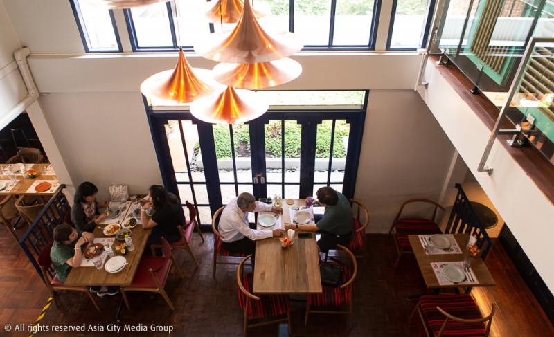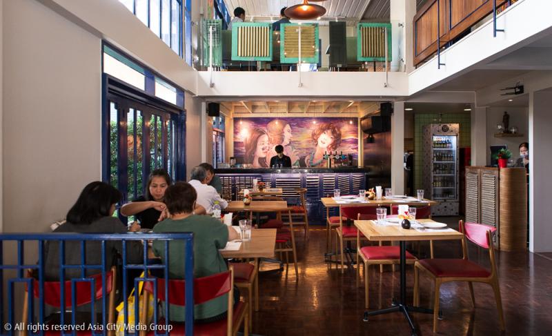 ข้อดีข้อแรกของร้าน ศรี'ชา (Sri'Cha) แน่นอนว่าเราไม่ต้องเดินทางไปไกลถึงศรีราชาเหมือนแต่ก่อนแล้ว เพราะโลเคชั่นใหม่ในบ้านสองชั้นหลังงามใจกลางสาทรแห่งนี้ ถูกรีโนเวทให้ลุคดูเหมือนบ้านพักตากอากาศเลียบชายทะเลในโทนสีน้ำเงินเข้มแบบกะลาสี ตัดด้วยผนังอิฐมอญที่ให้ฟีลเหมือนร้านอาหารที่ต่างประเทศ ภายในตกแต่งด้วยงานภาพเขียนแนวโมเดิร์นนิสต์สบายตา เข้ากับแปลนร้านแบบโล่ง ๆ ที่ดีไซน์ให้อากาศถ่ายเทสะดวก มีหน้าต่างบานเก่าเปิดให้แสงธรรมชาติเข้าผ่านกระจกรอบร้าน ถือเป็นร้านอาหารไทยอีกหนึ่งร้านที่ตกแต่งได้น่ารักและอบอุ่นเหมือนไปเที่ยวบ้านพักต่างจังหวัดกับครอบครัว