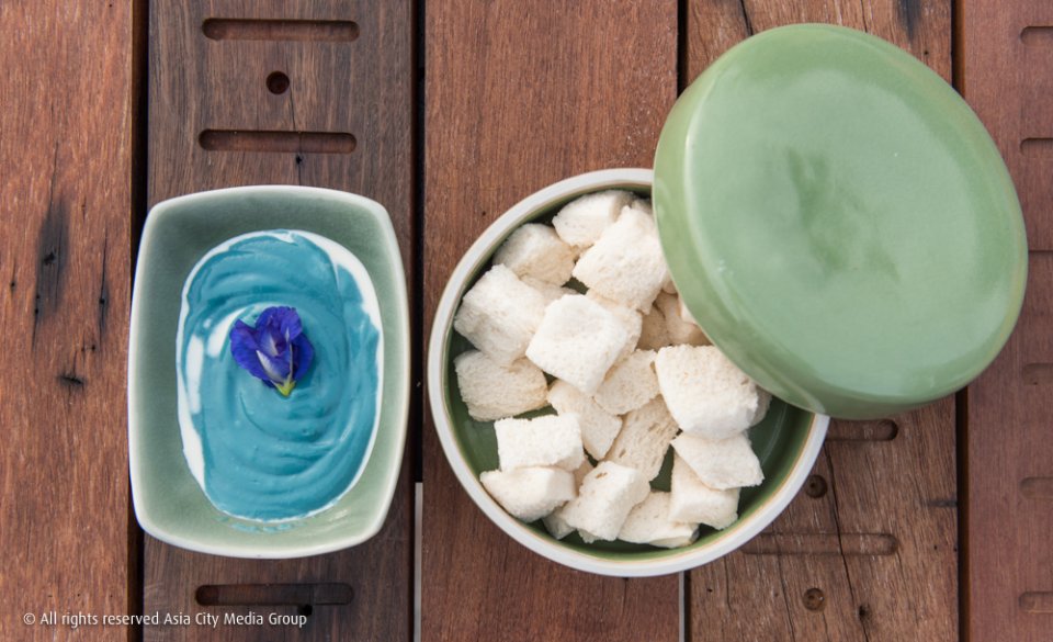 นอกจากขนมครกแล้ว เรายังถูกใจสังขยาอัญชันขนมปังนึ่ง (150 บาท) และเค้กใบเตยสาคูมะพร้าวอ่อน (150 บาท) โบราณเขาว่ากินคาวแล้วต้องกินหวาน ฉะนั้นก็จัดไปอย่าให้เสียนะ