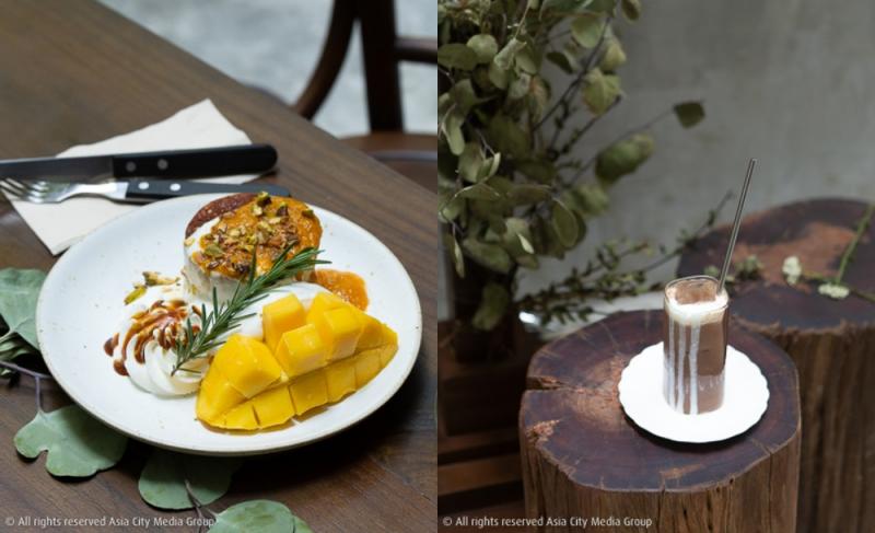 โดยเมนูวันนี้ที่ขึ้นโต๊ะมาให้เรารีวิวก็จะมีตั้งแต่ Ice Chocolate (ราคา 110 บาท) เครื่องดื่มช็อกโกแลตเข้มข้นกำลังดีแถมยังเย็นชื่นใจ โดยเขาจะใช้ช็อกโกแลตเกรดเดียวกับเบเกอรี่เลยนะ รับประกันความพรีเมียมในรสชาติแน่นอน Mango Stickey Rice Pancake (ราคา 245 บาท) ที่รวมส่วนผสมของไทยและเทศในจานเดียว ด้วยการนำข้าวเหนียวหุงใบเตยมาผสมกับแป้งแพนเค้กให้รสสัมผัสที่นุ่มหนึบและครีมที่ทำจากกะทิหอม ๆ รสเข้ากัน ราดด้วยซอสมะม่วงน้ำดอกไม้ เสิร์ฟมาพร้อมกับมะม่วงช่วยตัดรสเสริมความสดชื่น เมนูนี้มีแค่ซัมเมอร์ด้วยนะ