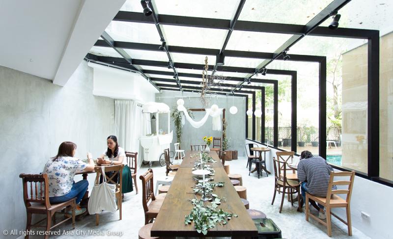 และร้านใหม่นี้ก็มีความแตกต่างจาก Dandilion Café ตั้งแต่โลเคชันที่มีความลึกลับ แถมยังติดสระว่ายน้ำอีกด้วย รวมถึงร้าน Dandelion Cafe เป็นร้านไซซ์มินิและสเปซไม่ได้โล่งโปร่งมาก พอย้ายร้านมาจึงมีคอนเซปต์การตกแต่งใหม่ให้ร้านมีความดิบ ๆ คลีน ๆ Minimal ผสม Rustic นิด ๆ มีการทุบกำแพงให้เห็นอิฐบล็อค รวมถึงทำพื้นและกำแพงเป็นแบบปูนเปลือย เพิ่มสเน่ห์ให้ร้านไปอีกแบบ อีกทั้งยังทำเพดานให้เป็นแบบเรือนกระจก ให้ภายในร้านได้รับแสง Daylight แบบเต็มที่ และยังตกแต่งร้านแบบจัดหนักจัดเต็ม เหมาะกับการไปจิบชา จิบกาแฟ พร้อมทานเค้กยามเช้า แล้วแวะถ่ายรูปสวย ๆ ก่อนกลับ