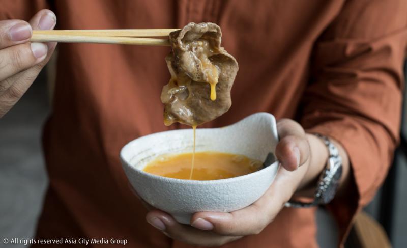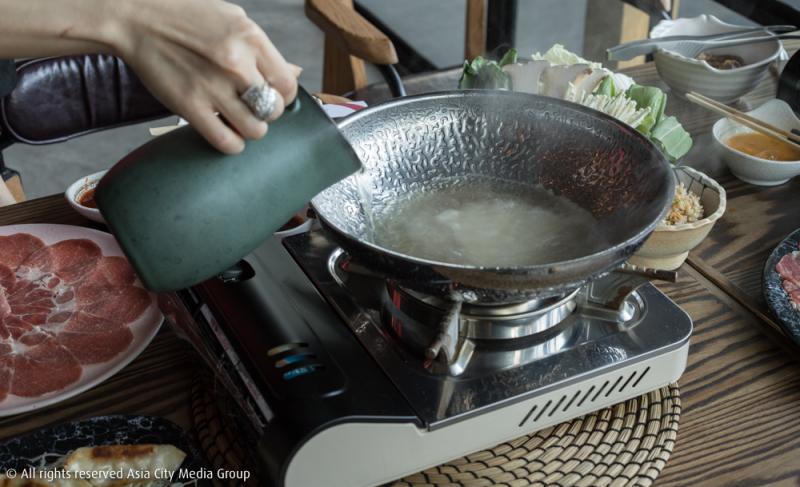 เริ่มกันที่บุฟเฟ่ต์ชาบูที่จะเสิร์ฟมาพร้อมน้ำซุปหอม ๆ ทำจากสาหร่ายคอมบุ อารมณ์คล้าย ๆ ซุปนาเบะ กับเซ็ตสุกี้ยากี้ที่จะมาพร้อมน้ำซุปสุกี้สีดำสูตรพิเศษซึ่งทำมาจากซอสถั่วเหลืองญี่ปุ่นแบบต้นตำรับ โดยพนักงานจะค่อย ๆ ผัดหอมหัวใหญ่และผักบนกระทะจนหอม แล้วค่อยให้เราใส่เนื้อและน้ำซุปตามลงไป ช็อต ๆ นี้ขอให้จินตนาการถึงเนื้อวากิวออสเตรเลียเกรดพรีเมียมในหม้อ ยิ่งเวลาได้กินคู่กับน้ำจิ้มทั้งสามสูตรของทางร้านคือ น้ำจิ้มงา พอนสึ และน้ำจิ้มพริกญี่ปุ่น คือเป็นอะไรที่ฟินนาเล่จนอยากเดินออกไปกรี๊ดนอกร้าน