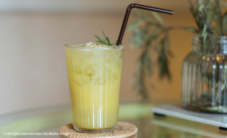 ความพิเศษอีกสองอย่างที่เพิ่มเข้ามาทำให้สาขาหลักนี้ไม่เหมือนหน้าร้านอีกสองแห่ง คือการมีบาร์เครื่องดื่มและห้องเวิร์กชอปไซซ์กะทัดรัดที่ด้านบนนั่นเอง เริ่มจากตัวบาร์เครื่องดื่มที่มีทีเด็ดอย่าง Yellow (140 บาท) ใช้ผลไม้สดคือ ลูกแพร์ ฝรั่ง และเสาวรส มาคั้นน้ำด้วยการสกัดเย็น (Slow press) อันนี้แนะนำว่าถ้ากินขนมหวานมาก ๆ แล้วเกิดรู้สึกผิด ก็จงเดินไปสั่งน้ำผลไม้มาซะ จะได้รู้สึกเฮลท์ตี้ขึ้นมาหน่อย