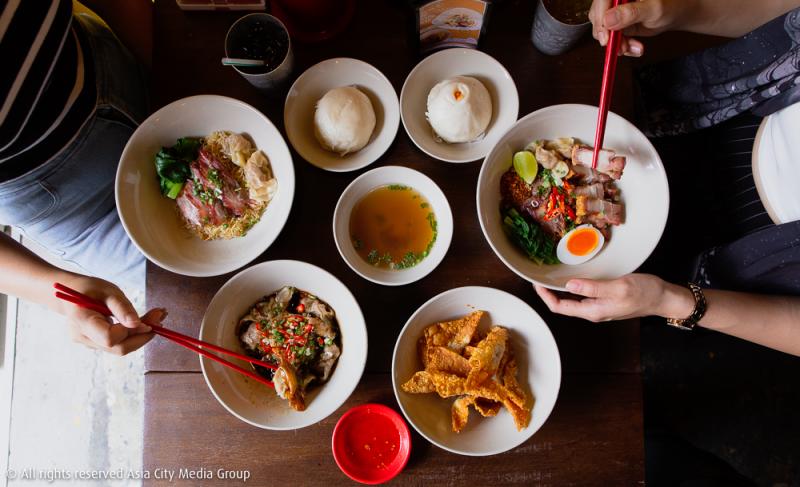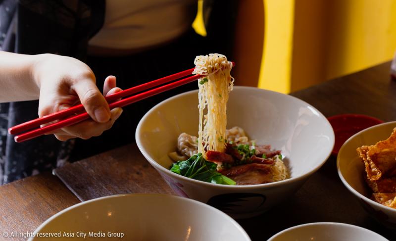 ถ้าให้พูดถึงความเด็ดดวงของบะหมี่ร้านนี้ คงต้องแยกออกมาเป็นสามพาร์ทหลัก ๆ คือ ตัวเส้นบะหมี่ น้ำซุป และเครื่องแน่น ๆ เริ่มจากการทำเส้นด้วยสองมือล้วน ๆ ตั้งแต่รุ่นแม่มาจนถึงรุ่นคุณแม็ก โดยขนาดของเส้นบะหมี่จะเล็กกว่าร้านทั่วไป มีความนิ่มมากกว่าปกติเนื่องจากใส่ไข่ลงไปเยอะกว่า ส่วนตัวซุปก็มีกลิ่นพิเศษของปลาหมึกแห้งและขิงที่แปลกกว่าร้านอื่น จบด้วยเครื่องบะหมี่แน่น ๆ อย่างหมูแดงย่างเตาถ่าน และหมูกรอบชิ้นใหญ่ที่เพิ่มเติมมาในสาขานี้ก็เด็ดดวงไม่แพ้กัน จะกินแบบออริจินอลอย่าง บะหมี่เกี๊ยวแห้งหมูแดง/หมูกรอบ (60-70 บาท) หรือบะหมี่เกี๊ยวต้มยำ (70-80 บาท) เมนูน้องใหม่เอาใจสายแซ่บที่คุณแม็กเพิ่งเพิ่มเข้ามาที่สาขานี้ก็เวิร์กสุดอะไรสุด