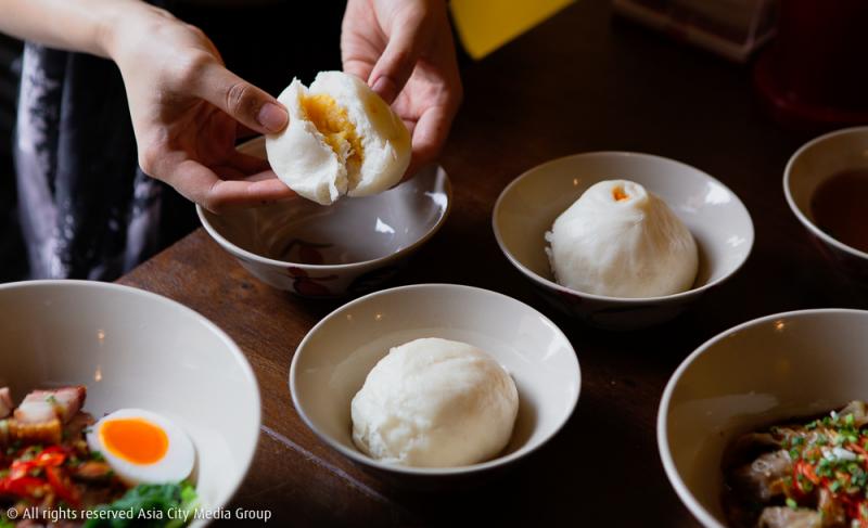ปิดท้ายด้วยซาลาเปาสูตรคุณแม่ที่โด่งดังพอ ๆ กับเกี๊ยวเสฉวน โดยมีให้เลือก 3 ไส้ คือ ซาลาเปาหมูสับไข่เค็ม (35 บาท) ซาลาเปาครีม (30 บาท) และซาลาเปาถั่วดำ (30 บาท) จุด ๆ นี้คือบะหมี่เกี๊ยวหนึ่งชาม ซาลาเปาหนึ่งลูก แค่นี้ก็อิ่มพุงระเบิดแล้วจ้า!