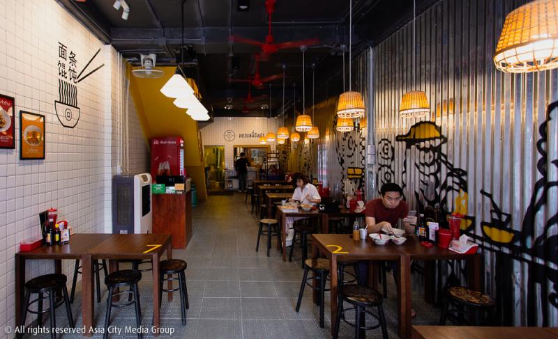 หยวนหมี่ปังเปา สาขาเอกมัยมาในลุคสีเหลือง-ขาวที่ฮิปสเตอร์ขั้นกว่าร้านบะหมี่ต้นตำรับรุ่นแม่ทั่วไป ที่เป็นแบบนั้นก็เพราะว่าได้ แม็ก-พงศ์วรินทร์ ภพธรรมะนันท์ ทายาทรุ่นสองของครอบครัวมาสานต่อกิจการ อย่างไอเดียขยายร้านมาเปิดที่เอกมัยก็เป็นไอเดียของคุณแม็กเอง แถมด้วยการใส่ความสนุกลงไปกับภาพเพ้นท์แนวสตรีทฮิป ๆ บนผนังแผ่นสังกะสี มองจากภายนอกคือวัยรุ่นมากจนถ้าไม่คุ้นชื่อร้านก็จะไม่รู้เลยว่าร้านเขาดังมาตั้งแต่รุ่นพ่อรุ่นแม่ อย่างบ้านเราเองก็เป็นลูกค้าประจำร้านนี้มาตั้งแต่ 20 ปีที่แล้วโน่น!