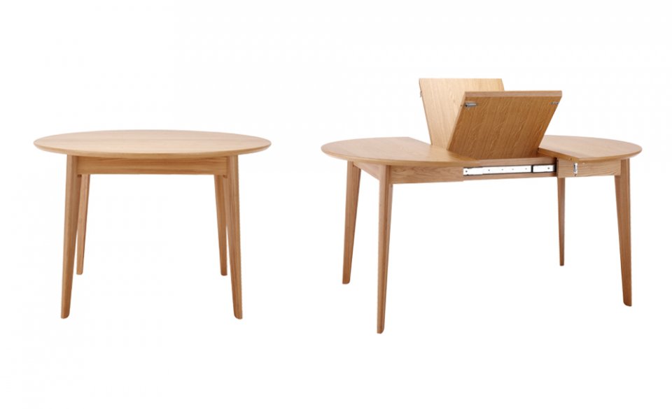 โต๊ะไม้โอ๊ค Moder เหมือนเกิดมาเพื่อคอนโดอย่างแท้จริง อาจจะดูเหมือนโต๊ะอาหารกลมๆ ธรรมดา แต่มันสามารถปรับออกเป็นโต๊ะทรงรี เพิ่มพื้นที่ตรงกลางได้ด้วย เสร็จสรรพแล้วนั่งสบายๆ ได้ถึง 8 คน หมดปัญหาเวลาชวนแก๊งค์เพื่อนมาดินเนอร์แล้วต้องขี่คอกันกินข้าว