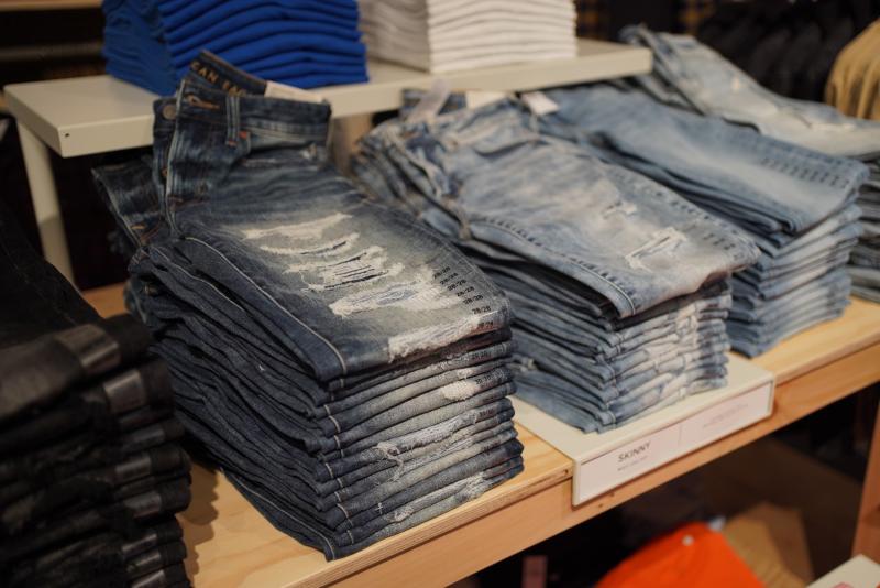 แน่นอนว่าเป็นสโตร์ภายใต้แบรนด์ American Eagle ทั้งที ก็ต้องมีไฮไลต์เป็นกางเกงยีนส์สวยเท่ ซึ่งเค้าจัดโซนหนึ่งในร้านเป็นแกลเลอรีกางเกงยีนส์ โดยเราสามารถเข้าไปเลือกขนาดและทรงกางเกงที่อยากได้จากสารพัดคอลเลกชัน จนแทบจะเรียกได้ว่าเกือบจะเป็นการคัสตอมกางเกงยีนส์ของตัวเองขึ้นมาเลยทีเดียว