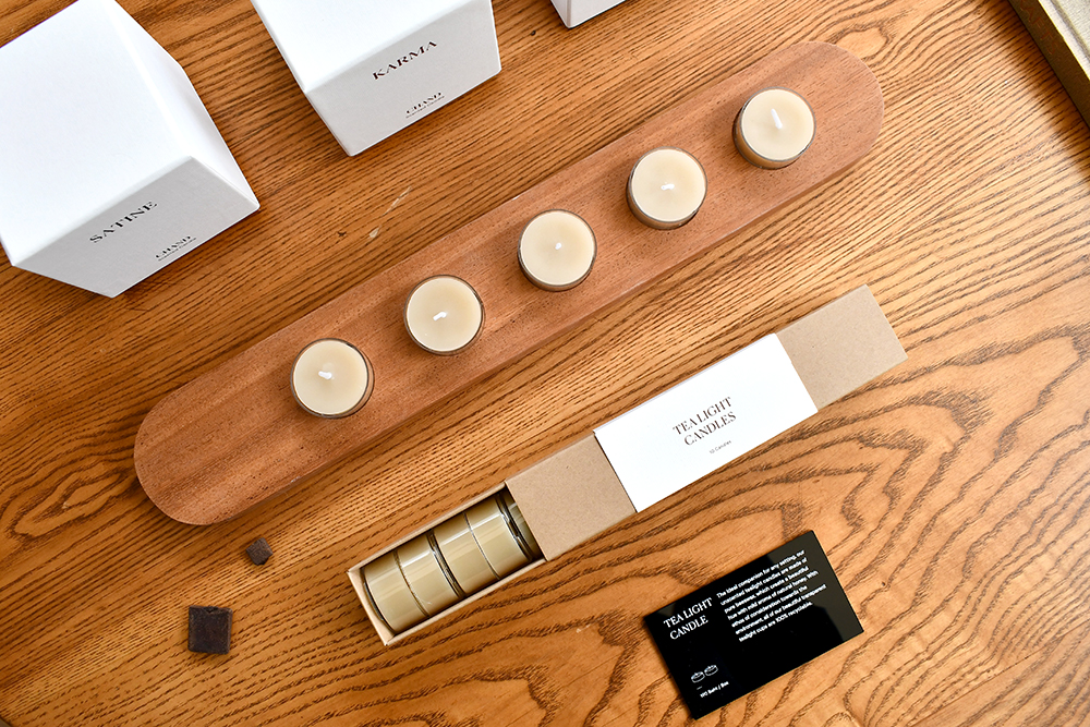 เราชอบที่เทียนของ CHAND ไม่ใช่แค่ดีไซน์สีแพนโทนที่ถูกใจเราเท่านั้น แต่เทียนของแบรนด์นี้เขายังคำนึงถึงการใช้งานด้วยการเลือกสรรวัตถุดิบคุณภาพดี อย่างเช่นการใช้ขี้ผึ้งแท้ 100% ในการทำ Tealight Candles หรือ เทียนถ้วย ซึ่งสามารถช่วยปรับอากาศภายในห้องให้ปลอดโปร่งได้อีกด้วย