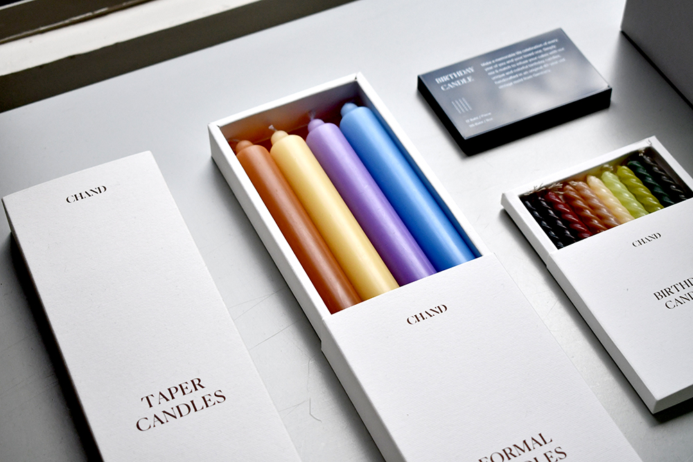 แต่สำหรับ 'คนขายเทียน' รุ่นใหม่ทั้งคู่แล้ว สุนทรียภาพผ่านคู่สีบนแท่งเทียน คือหนึ่งในกิมมิกหลักที่ผลักดันให้ CHAND ก้าวมาเป็นหนึ่งในร้านขายเทียนที่น่าจับตามองที่สุดในกรุงเทพมหานคร พร้อมผลิตภัณฑ์ที่ถึงแม้จะต่อยอดมาจากธุรกิจครอบครัวสัก 90% แต่พอผสมรวมกับงานดีไซน์ แพชชั่น และสีแพนโทนลงไปแล้ว เทียนจาก CHAND เลยส่องสว่างโดดเด้งขึ้นมาจากเทียนตามท้องตลาดทั่วไปหลายเท่าตัว