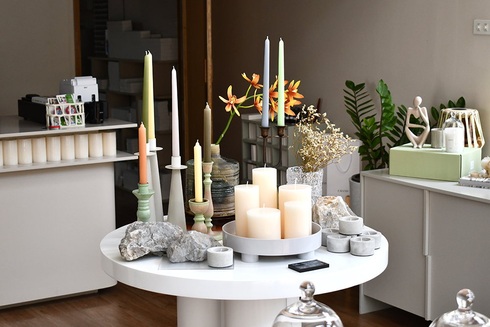 ส่วนถ้าใครที่มาบูทีกเทียนแห่งนี้แล้วสงสัยว่าห้องลับด้านหลังร้านคืออะไร เราก็แอบไปกระซิบถามเจ้าของร้านแล้วได้ความมาว่า ที่ห้องด้านหลังเปรียบเสมือนห้องแล็บทดลองสำหรับทำเทียนหอม ซึ่งในอนาคตมีแพลนไว้ว่าอาจเปิดเป็นโปรเจกต์พิเศษให้ลูกค้าสามารถคัสตอมไมซ์กลิ่นและสีสำหรับเทียนของตัวเองได้ด้วย รวมถึงทำเทียนคอลเลกชันพิเศษ อย่างเช่นเทียนสำหรับเทศกาลฮาโลวีน หรือเทียนรุ่นลิมิเต็ดตามซีซันต่าง ๆ ใครเป็นสายสะสมเทียนก็รอปักหมุดกันไว้ให้ดี!