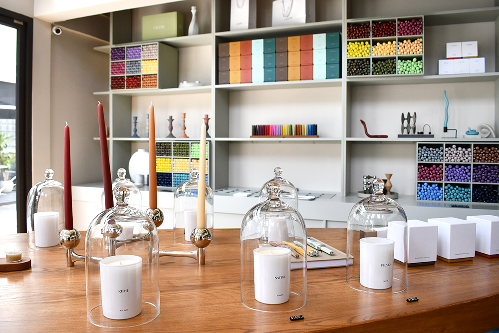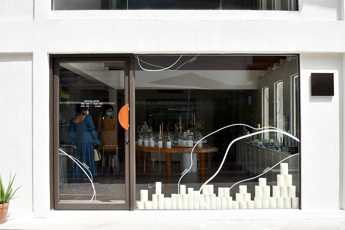 ห้องกระจกคลีน ๆ สุดแสนมินิมอล เป็นที่ตั้งของร้านขายเทียนแบรนด์ CHAND แฟล็กชิปแห่งแรกและแห่งเดียวของแบรนด์ที่ตั้งใจทำให้เรียบง่ายที่สุด ผนังสีขาวล้วนช่วยขับให้สีแพนโทนของเทียนไขสารพัดรูปแบบของแบรนด์เด่นชัดสะดุดตายิ่งขึ้น เราชอบการจัดวางดิสเพลย์ของร้านนี้ที่ทำให้การซื้อเทียนกลายเป็นเรื่องน่ารื่นรมย์ราวกับมาเดินดูงานศิลปะเลยทีเดียว
