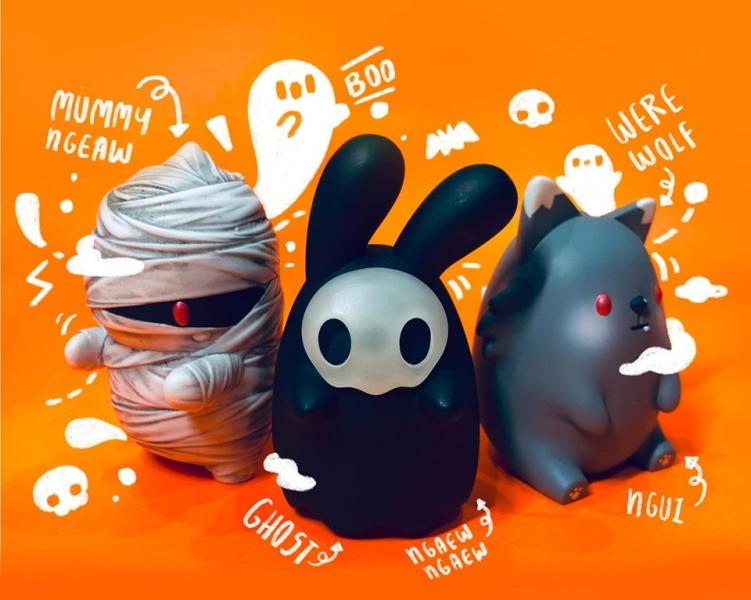 แม้ Designer Toy จะกำลังฮิตในโซนเอเชียตะวันออกอย่างจีน เกาหลี และไต้หวัน แต่ที่ไทยเราก็มี Toy Designer เหมือนกันนะ Ngaew Ngaew (อ่านว่า แง้ว แง้ว) เป็นแบรนด์จากดีไซเนอร์ไทยรุ่นใหม่ไฟแรงที่ออกแบบคาแรกเตอร์มาถึง 3 ตัว คือแง้วกระต่าย, งุ้ยหมาป่า และเงี้ยวไดโนเสาร์ ซึ่งเอกลักษณ์ก็จะอยู่ที่ความอ้วนตัวกลมของทั้ง 3 ที่น่ารักน่าซื้อเป็นที่สุด อย่างปลายเดือนตุลาคมที่เป็นเทศกาล Halloween เธอก็เพิ่งทำคอลเลกชันใหม่ออกมา 3 แบบ 3 ตัวครบแก๊งเลย โดยเราก็รับประกันความมาไวไปไวของเจ้านี้ เพราะเราเห็นเขาเปิดพรีออเดอร์วันไหน ก็หมดภายในวันนั้นเลย แถมในหลายปีที่ผ่านมา Ngaew Ngaew ก็ถูกเชิญไปงานทอยของต่างประเทศอยู่หลายครั้งหลายครา ลูกค้าเจ้าประจำของแบรนด์นี้จึงไม่ได้มีแค่คนไทย แต่ต้องฝ่าฟันแย่งชิงร่วมกับแฟน ๆ ต่างชาติด้วย
